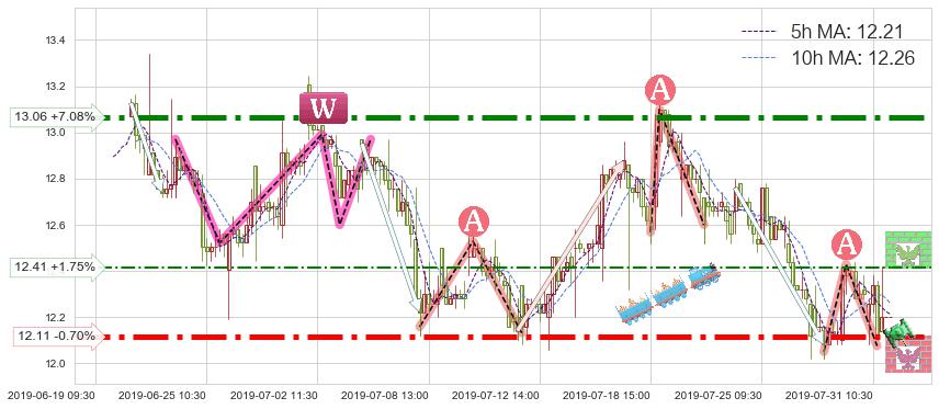 ♘ 支撑价格位12.11,可信任强度94.91%,距离最后交易2019-07-31 15:00形成的收盘价格12.20相差 -0.70%