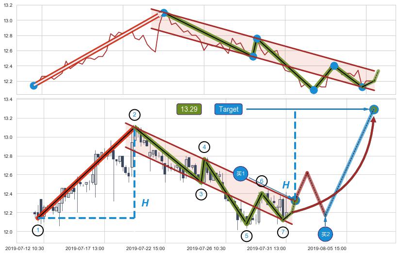 ➣ 最小中继整理涨幅→𝐇: 0.9600 (𝐇旗杆的长度:旗杆起点→顶点)