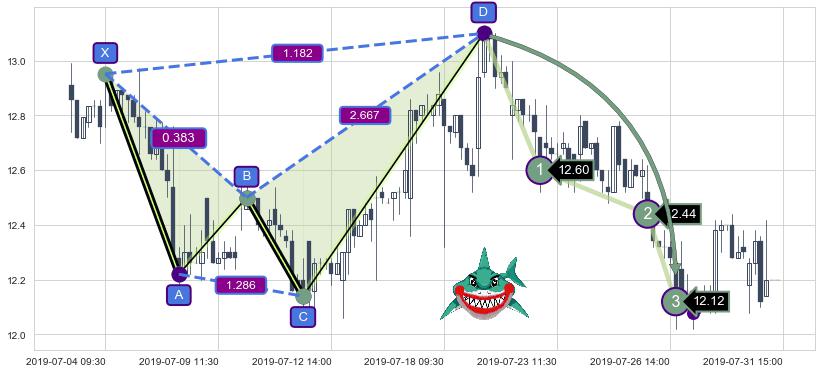 ➣ 已完成【鲨鱼】形态起点X: 07-04:09, 终点D: 07-19:10, 共68交易小时