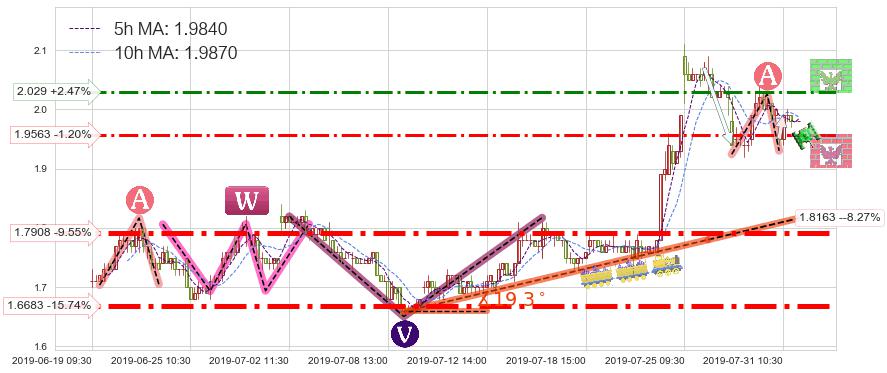 ♘ 阻力价格位2.029,可信任强度68.35%,距离最后交易2019-07-31 15:00形成的收盘价格1.9800相差 +2.47%