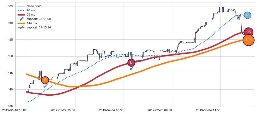 上涨趋势01-10 13:00-03-08 11:30,均线144, 95确认关键支撑2处