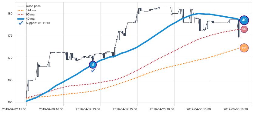 上涨趋势04-02 15:00-05-06 10:30,均线40确认关键支撑1处