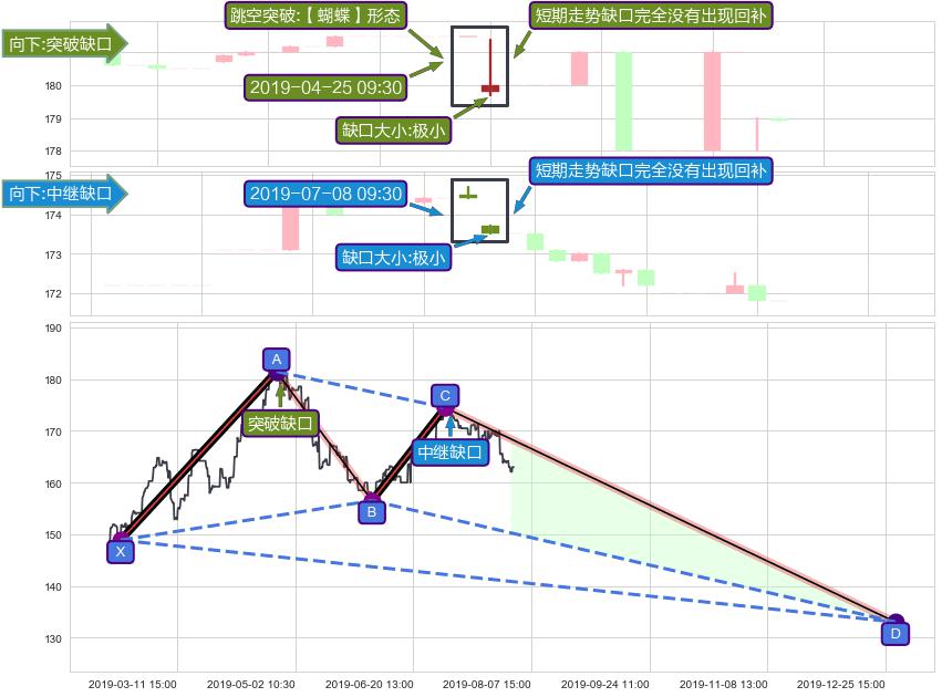 ➢ 【蝴蝶】形态 🔜 中继缺口 🔜 突破缺口 综合量化分数:39.45 【偏空】