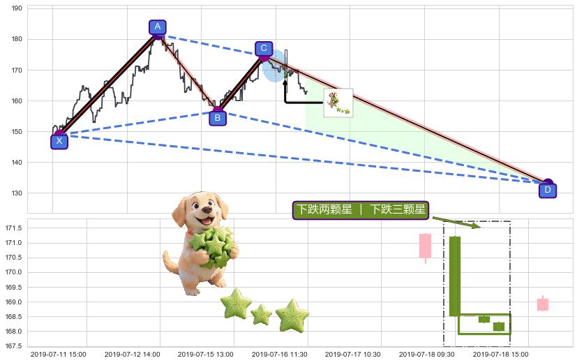 | 7 🅚:【战机起航】卖出点 ➕ 📡:谐波蝴蝶猜想c点拉升接近b点后强阻力来临下沉下跌(均值回复) ☞ 看空信号 ⇥ 【均线】交织【图形】⇥ 综合量化分数: 23 | > |
