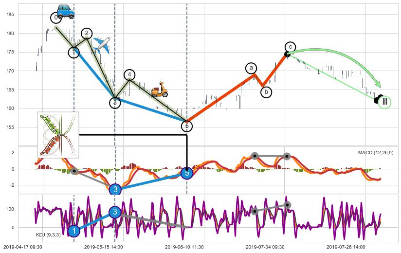 ➣ a,c调整浪MACD, RSI, KDJ走势都【未出现】背离,abc走势延续, 5浪反转概率增强