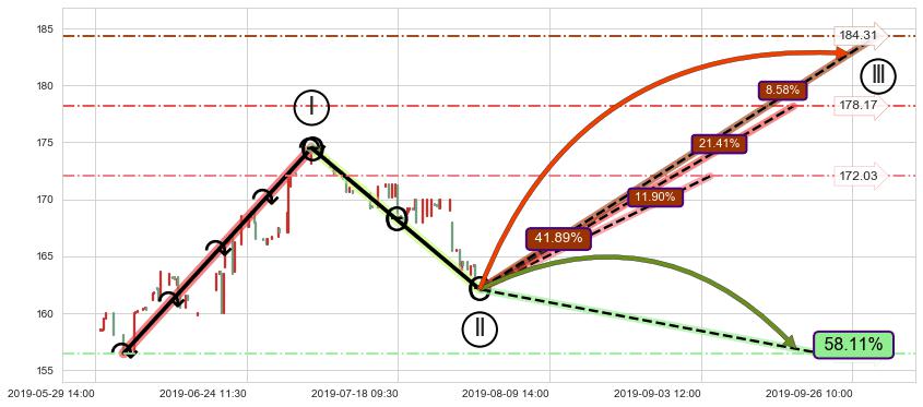 ➣ 循环浪继续向上【平均值】位置(09-17:13, 178.17),匹配聚类样本比例51.12%, 可能性概率21.41%
