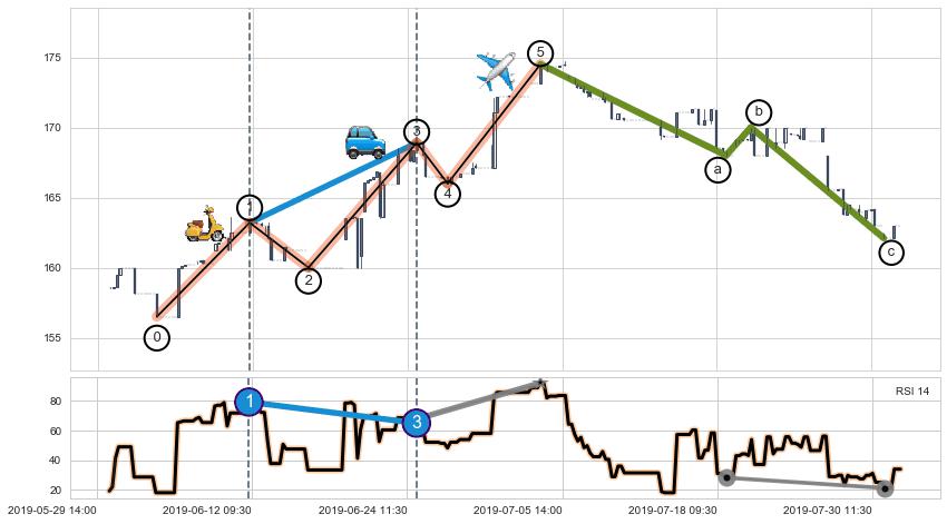 ➣ a,c调整浪RSI走势未出现明显背离