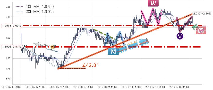 ✂️ 2019-05-23 15:00-2019-07-15 13:00上升趋势存在反转[风险],其原上升趋势的支撑位(2.017)已破位[强阻力信号],原上升趋势角度: 42.8˚
