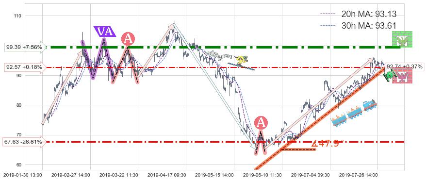 ♘ 阻力价格位99.39,可信任强度92.51%,距离最后交易2019-07-31 15:00形成的收盘价格92.40相差 +7.56%