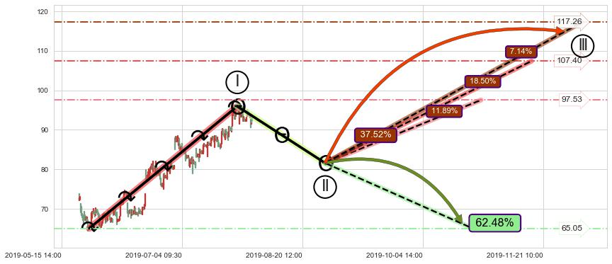 ➢ 高概率大级别循环上涨浪被破坏,反转向下(突破5浪起点)概率62.48%