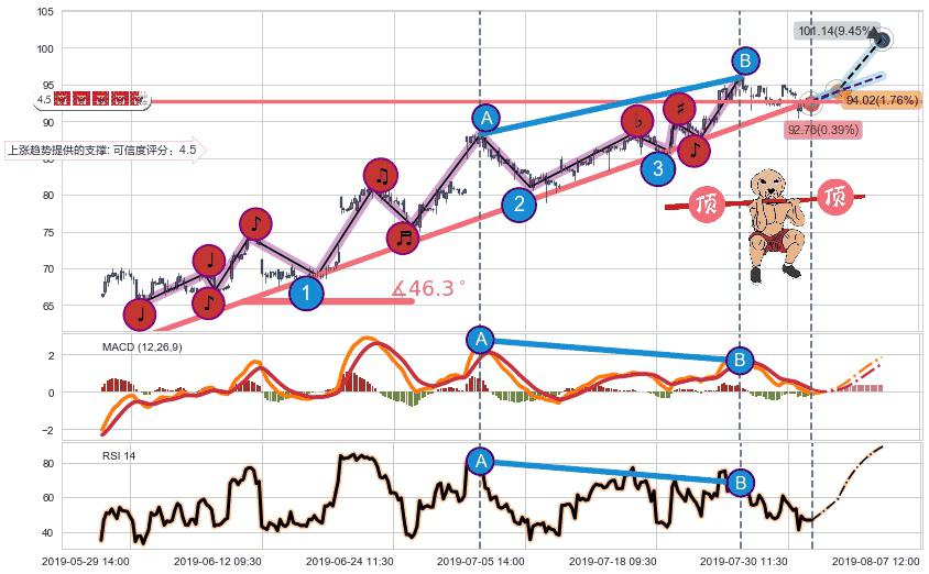 ➢ 预测:2019-08-02 13:00,【试探支撑】稳定目前上涨趋势的前提下,预测价格:94.02