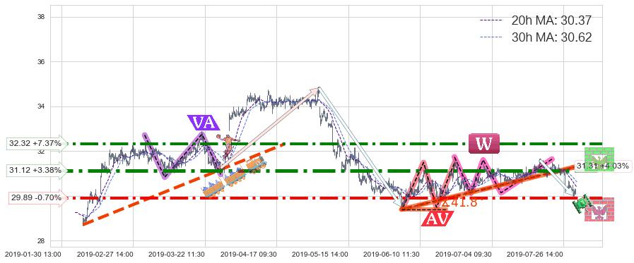 ♘ 阻力价格位31.12,可信任强度88.69%,距离最后交易2019-07-31 15:00形成的收盘价格30.10相差 +3.38%