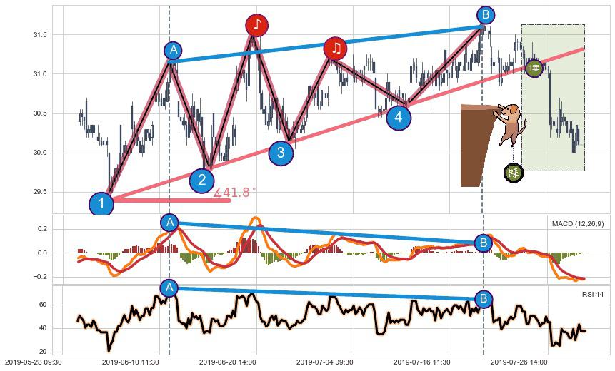 ➢ 最后的上涨趋势2019-06-03 09:30至2019-07-30 15:00:存在破位迹象,后续小调整或者反转下跌
