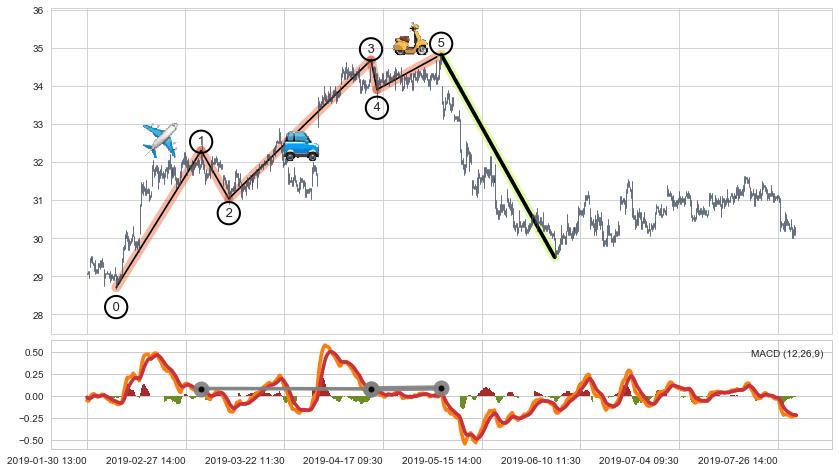 从2019-02-27 13:00至2019-03-28 09:30,共包含124个小时,阶段股价下跌-2.78%,阶段股价变动位移路程比: 1 : 14