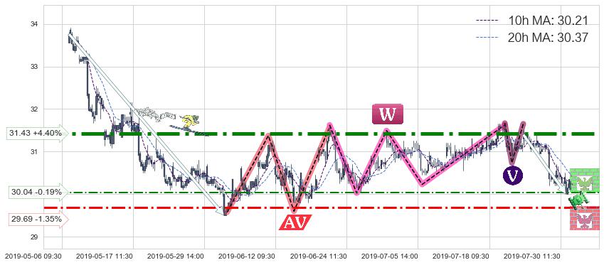 ➣ 【已确认突破】最后价格:30.10与最小【整理】第一目标价格→(08-02:15: 29.35 )相较: 下跌空间【中等】