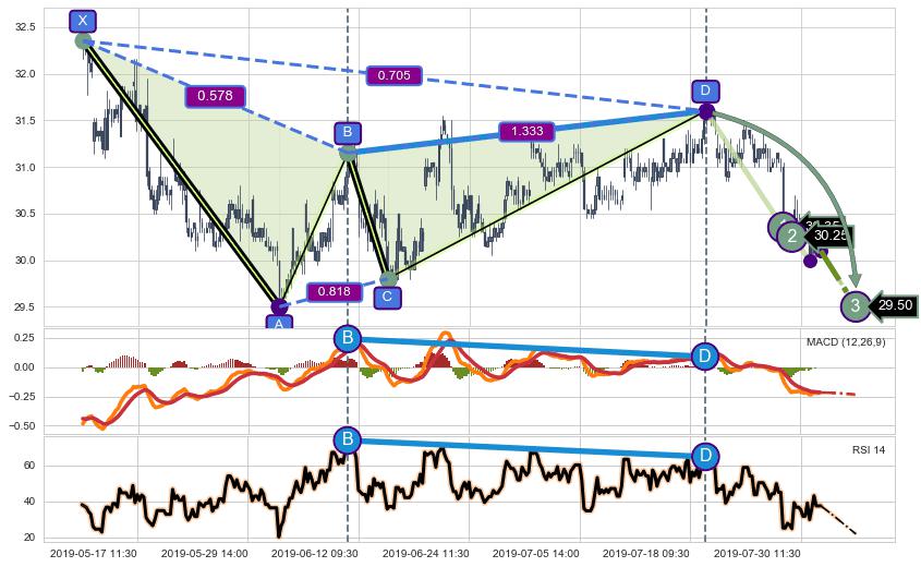 ➢ 谐波价格D点比B点高 ⤴,【MACD】指标D点比B点低 ⤵️