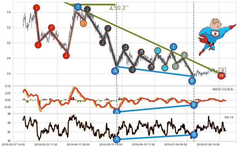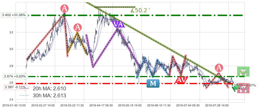 ⚔️ 2019-03-07 10:30-2019-07-18 15:00下跌趋势存在反转上涨[机会],虽然原下跌趋势的阻力位(2.565)已被突破,但其阻力效果尚存,原下跌趋势角度: 50.2˚