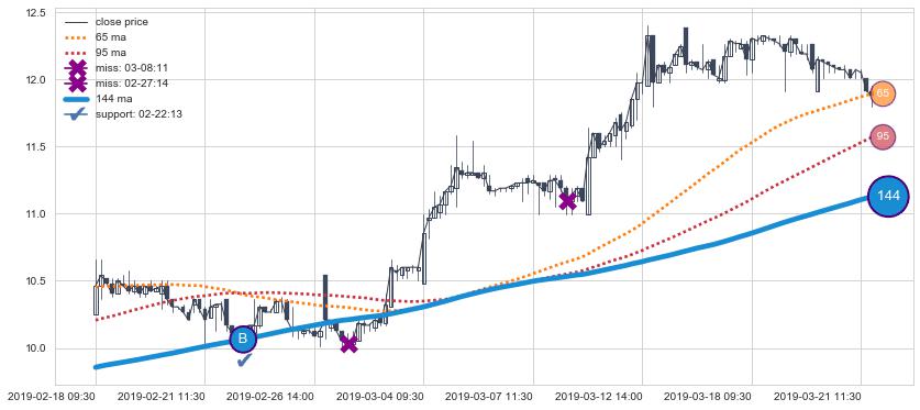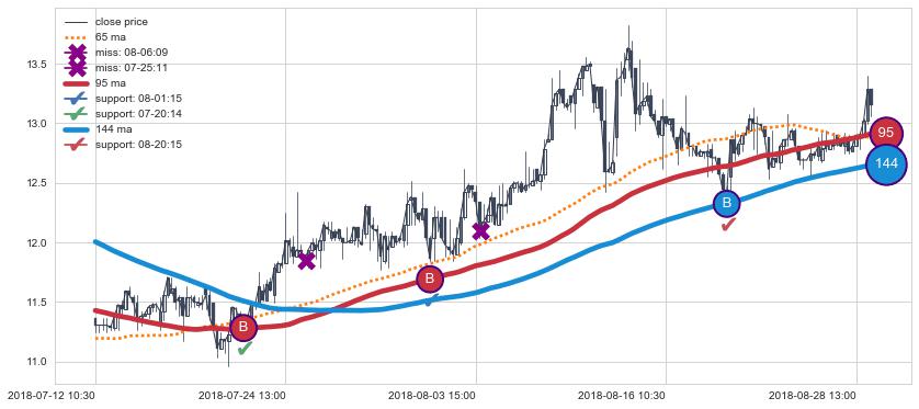 上涨趋势07-12 10:30-08-29 10:30,均线144, 95确认关键支撑3处