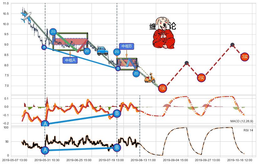 ➣ 【未完成】缠论 起点:05-06:11, 完成第1中枢A,完成第2中枢B,到达07-31:15