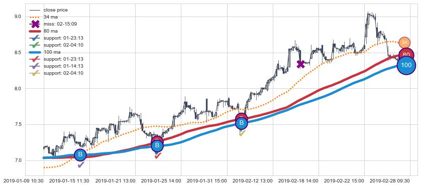 上涨趋势01-09 10:30-02-28 09:30,均线80, 100确认关键支撑3处