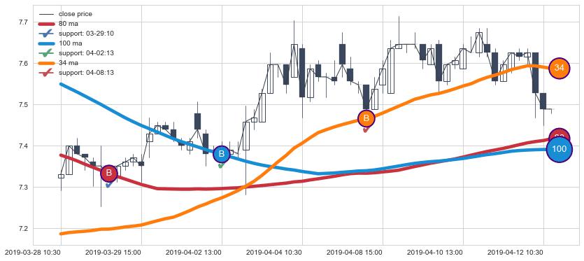 上涨趋势03-28 10:30-04-12 11:30,均线80, 34, 100确认关键支撑3处