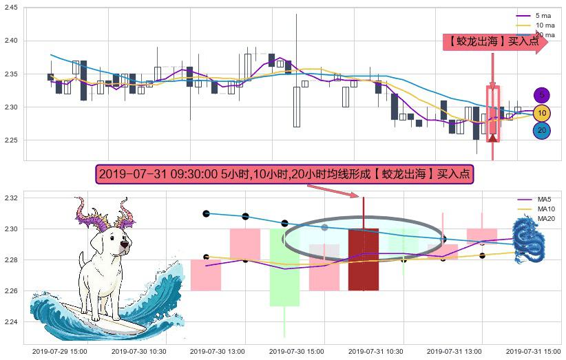 ⚀ 2019-07-31 09:30:00小时显现 5小时-10小时-20小时均线 【蛟龙出海】买入点 看多信号,后市看涨,买入