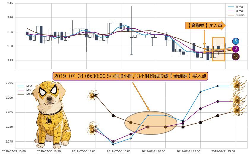 ⚀ 2019-07-31 09:30:00小时显现 5小时-8小时-13小时均线 【金蜘蛛】买入点 看多信号,后市看涨,买入