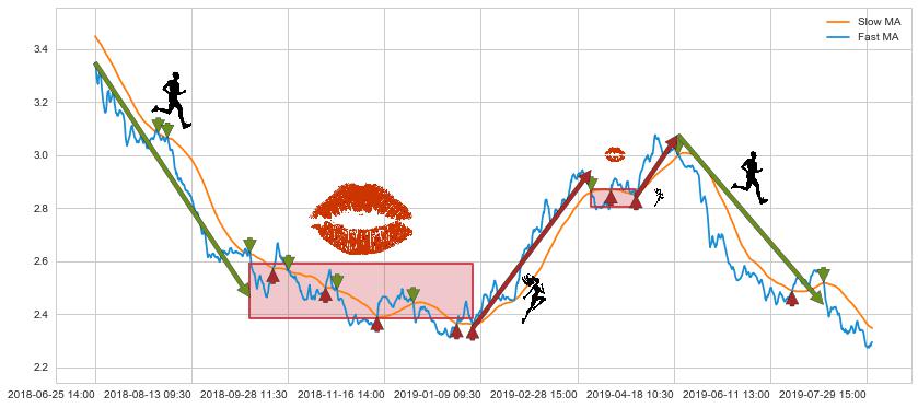 ⚂ 2019-07-03 14:00:00-小时均线向上突破,2019-07-08 14:00:00-小时重新下穿均线破位,均线阻力再次生效