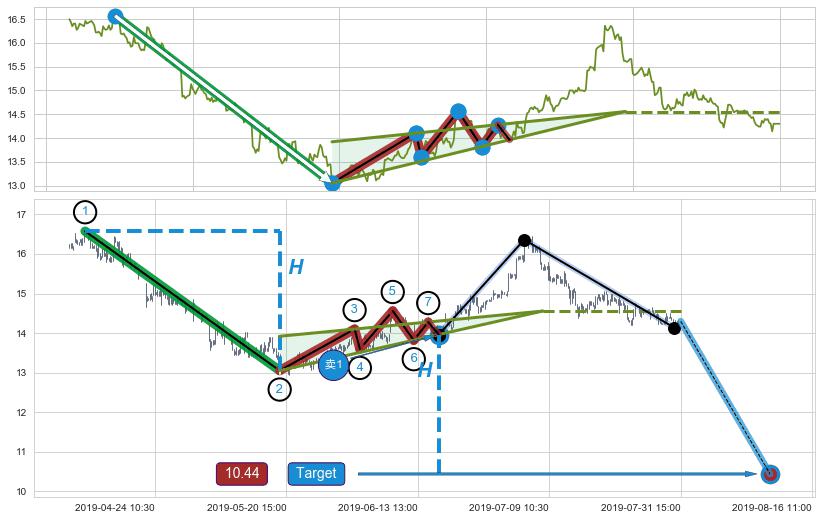 ➣ 【已确认突破】最后价格:14.30与最小【整理】第一目标价格→(08-16:11: 10.44 )相较: 下跌空间【较大】