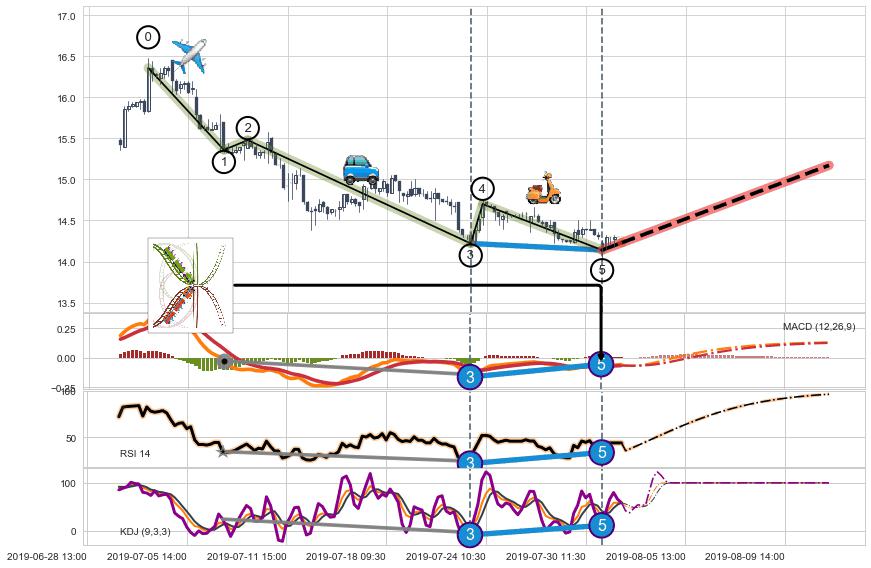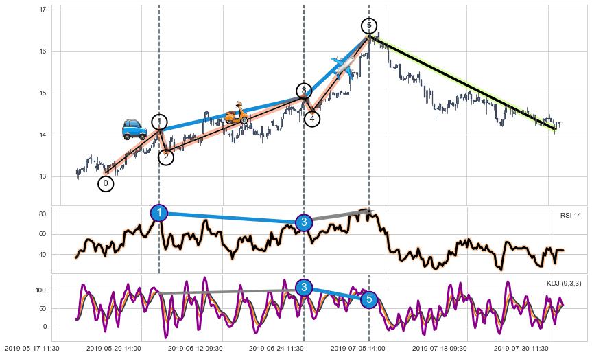 ➣ 1,3,5驱动浪MACD, RSI, KDJ走势都出现【常规背离】反转信号增强