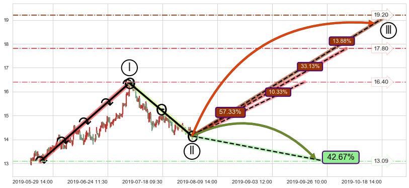 ➣ 循环浪继续向下【平均值】位置(09-17:13, 13.48),匹配聚类样本比例48.09%, 可能性概率16.52%