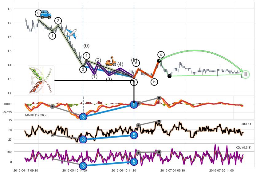 ➢ a,c调整浪MACD, RSI, KDJ走势都【未出现】背离,abc走势延续, 5浪反转概率增强