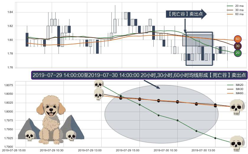 ⚀ 2019-07-29 15:00:00-小时至2019-07-30 14:00:00-小时显现 20小时-30小时-60小时均线 【死亡谷】卖出点 看空信号,后市看跌,卖出