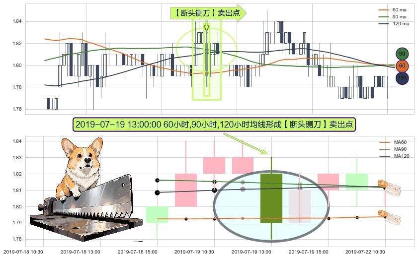 ⚀ 2019-07-19 13:00:00小时显现 60小时-90小时-120小时均线 【断头铡刀】卖出点 看空信号,后市看跌,卖出