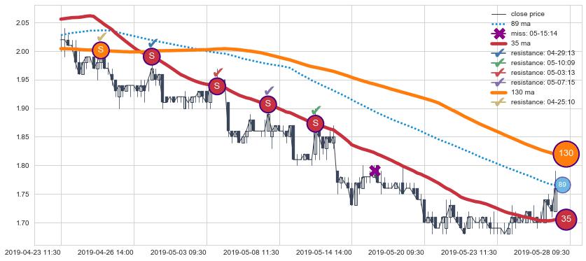 ⚃ 在破位点附近ma走势已有下垂迹象,稍后的走势中ma下降趋势明显,信号【可信度高】