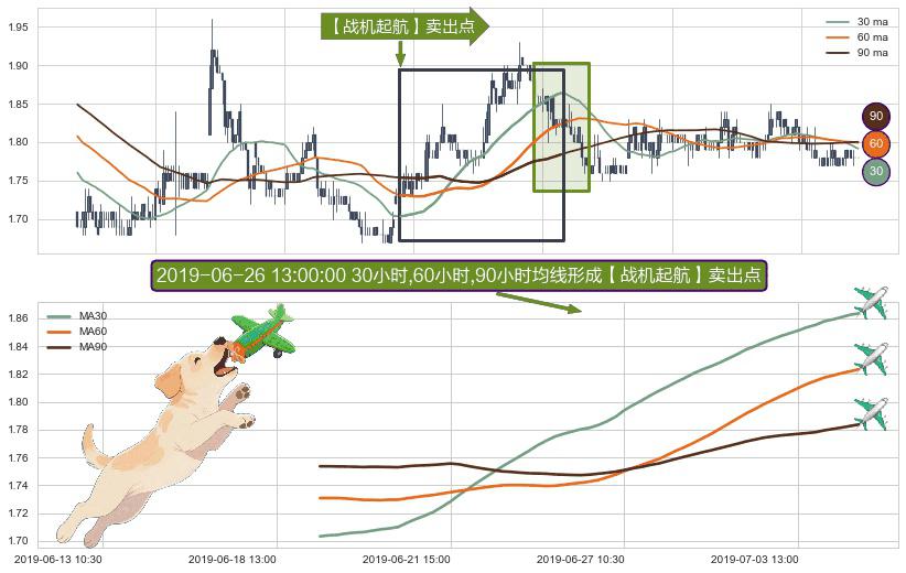 ⚀ 2019-06-19 11:30:00小时-2019-07-04 14:00:00小时显现 30小时-60小时-90小时均线 【战机起航】卖出点 看空信号,后市看跌,卖出