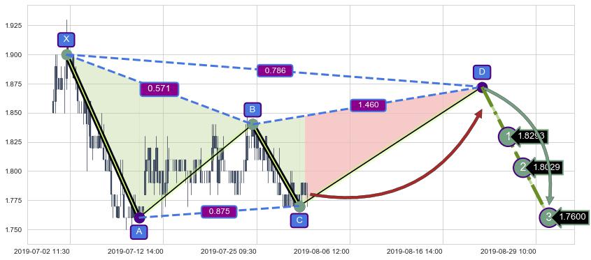 ➢ 距离预测D点位置有足够的上涨空间, 与看跌【伽利】形态相反,实际方向【看涨】