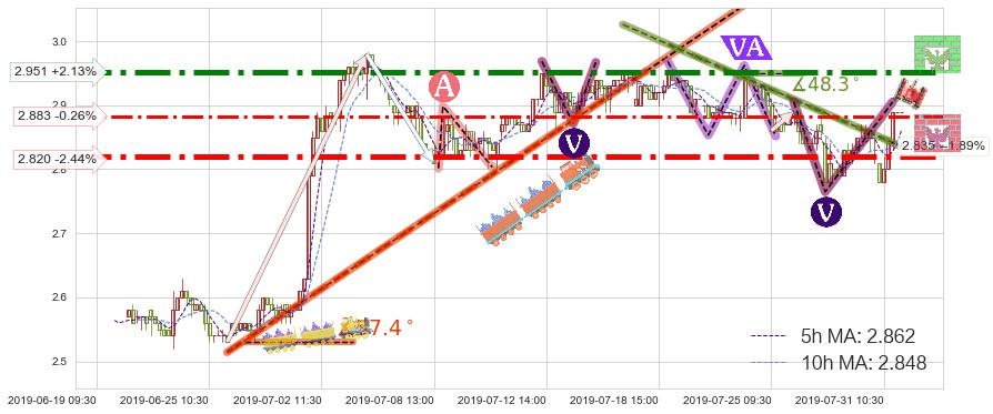♘ 阻力价格位2.951,可信任强度96.88%,距离最后交易2019-07-31 15:00形成的收盘价格2.890相差 +2.13%