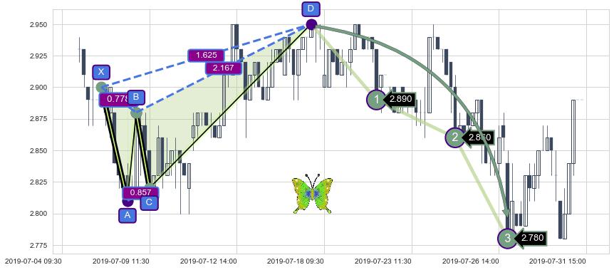 ➣ 已完成【蝴蝶】形态起点X: 07-05:13, 终点D: 07-17:13, 共49交易小时