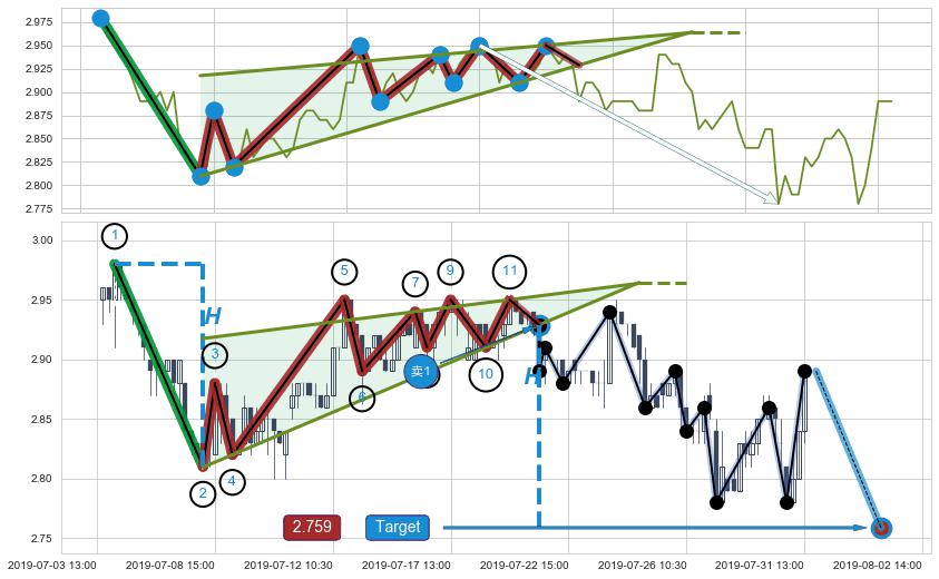 ➢ 最小中继整理跌幅→𝐇: 0.170000 (𝐇楔型旗杆的长度:楔型起点→顶点)