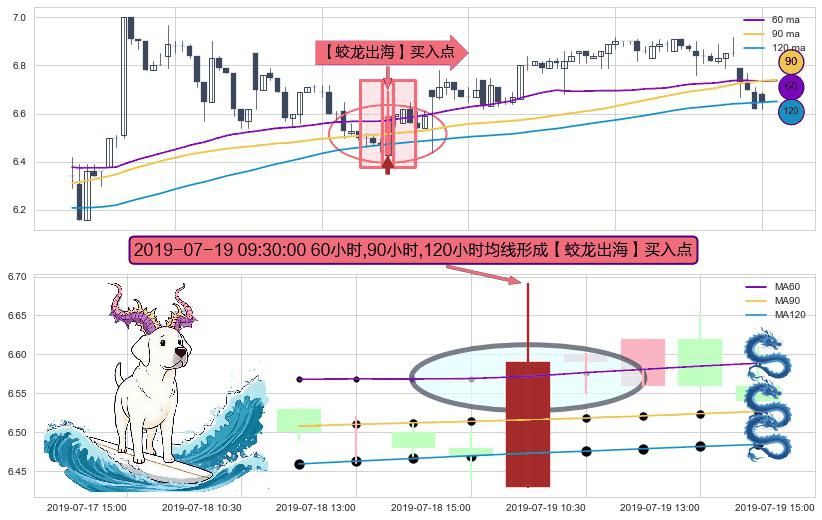 ⚀ 2019-07-19 09:30:00小时显现 60小时-90小时-120小时均线 【蛟龙出海】买入点 看多信号,后市看涨,买入