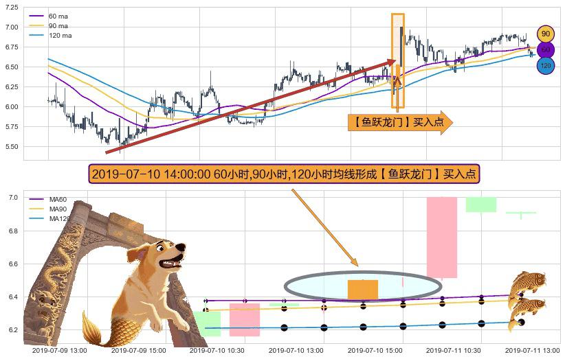⚀ 2019-07-10 14:00:00小时显现 60小时-90小时-120小时均线 【鱼跃龙门】买入点 看多信号,后市看涨,买入