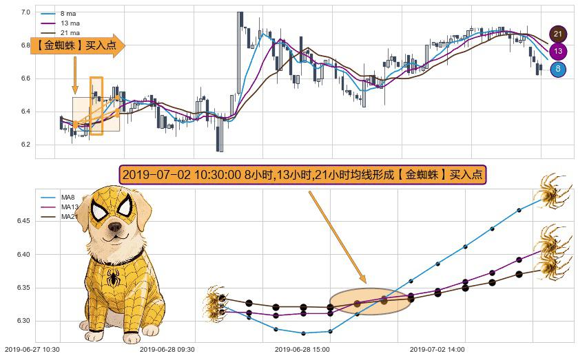 ⚀ 2019-07-02 10:30:00小时显现 8小时-13小时-21小时均线 【金蜘蛛】买入点 看多信号,后市看涨,买入