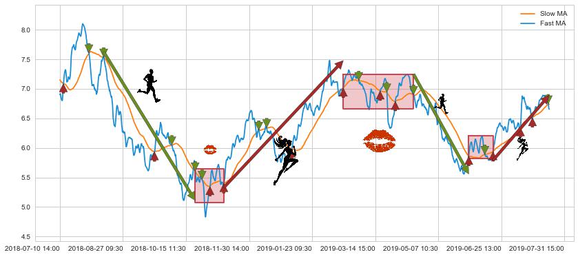 05-30 11:30至06-19 10:30 慢线与快线多次接触,存在上下穿越,有缠绕