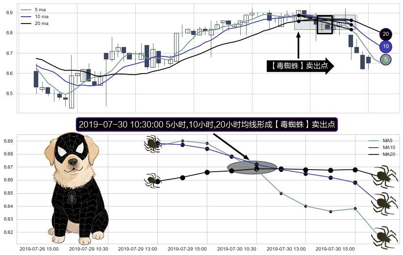 ⚀ 2019-07-30 10:30:00小时显现 5小时-10小时-20小时均线 【毒蜘蛛】卖出点 看空信号,后市看跌,卖出