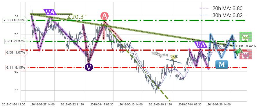 ♘ 支撑价格位6.58,可信任强度82.65%,距离最后交易2019-07-31 15:00形成的收盘价格6.65相差 -1.07%