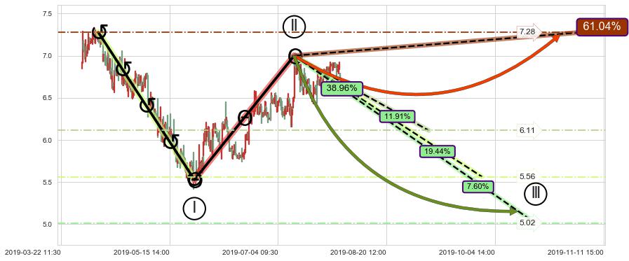 ♘ 支撑价格位6.11,可信任强度68.79%,距离最后交易2019-07-31 15:00形成的收盘价格6.65相差 -8.15%