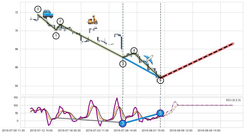 ➣ 第三,五驱动浪端点:【KDJ】走势出现【常规背离 & 反转信号】背离程度99.00%,背离夹角角度87.8˚,背离程度较大