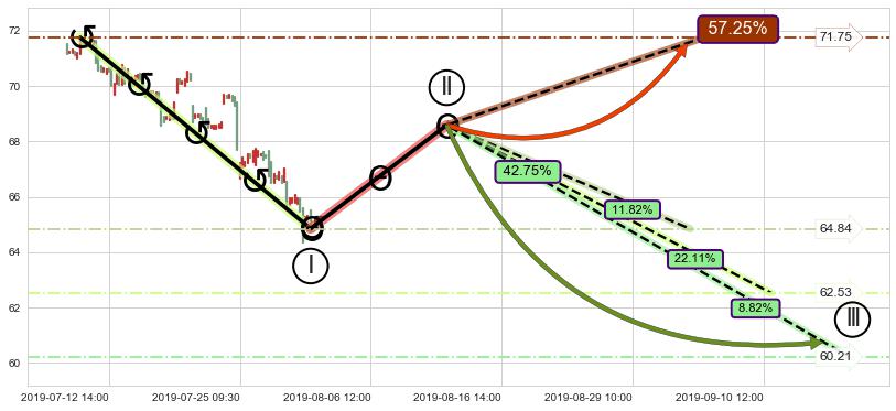 ➢ 循环浪继续向下【最高】位置(09-03:14, 64.84),匹配聚类样本比例27.64%, 可能性概率11.82%