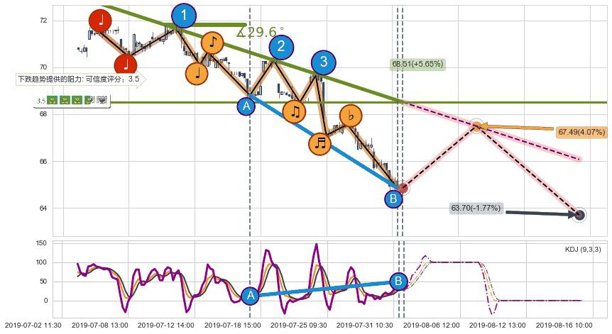 ➣ 预测:2019-08-16 10:00,【继续下探】稳定目前下跌趋势的前提下,预测价格:63.70